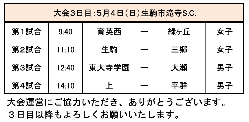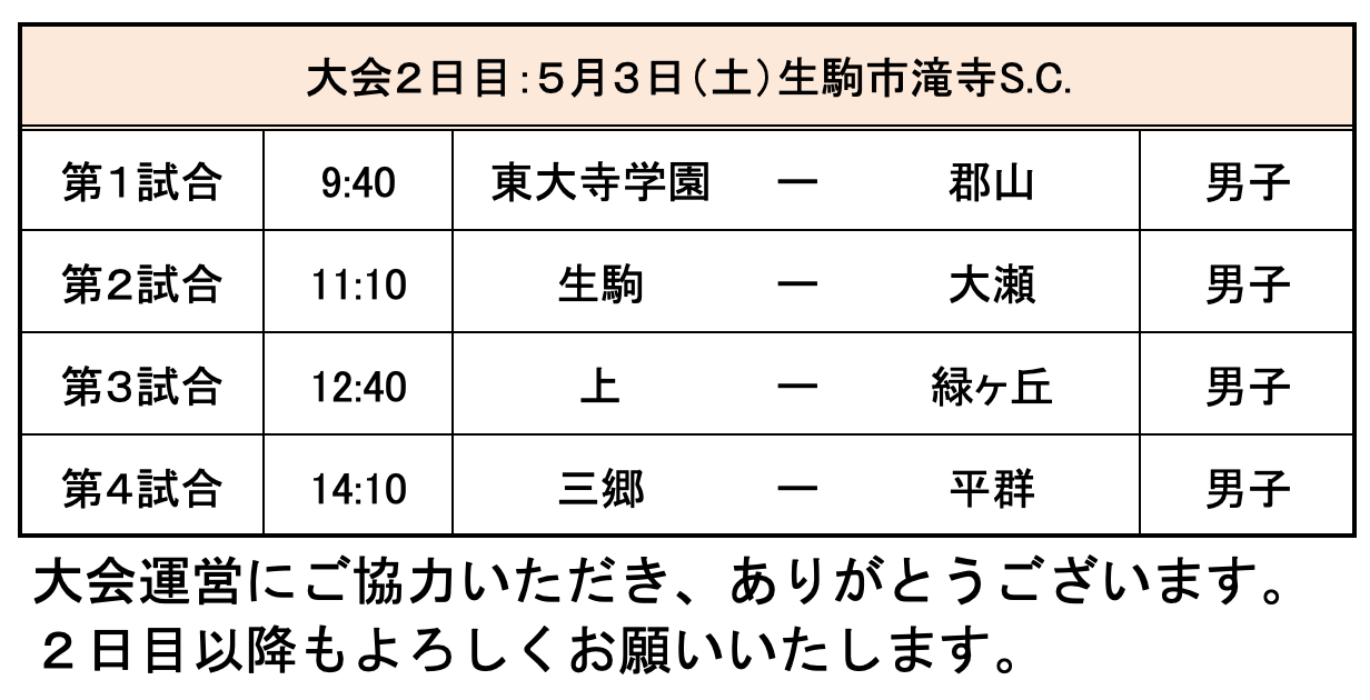 第76回 奈良県中学校春季ハンドボール選手権大会2日目結果