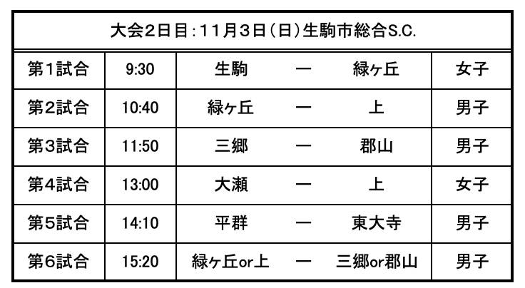 2019年11月03日 第56回奈良県中学校ハンドボール新人大会2日目結果(11月3日) 予選の結果、上記の学校で男子リーグ戦・女子リーグ戦を行います。最後まで応援よろしくお願いいたします。※表記にミスがありましたので、訂正させていただきました。(11月4日)