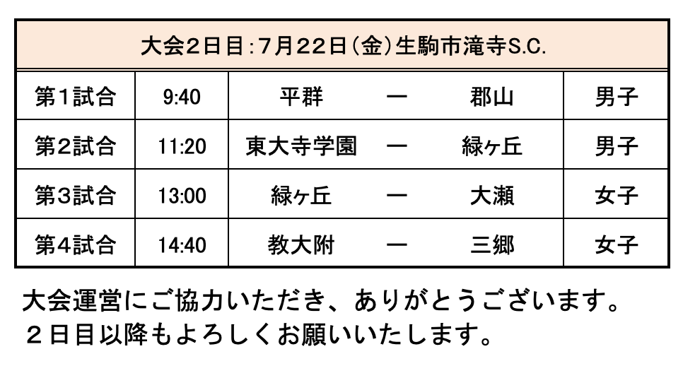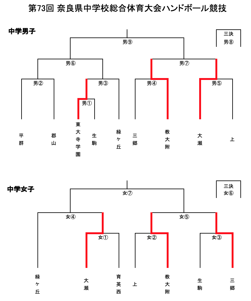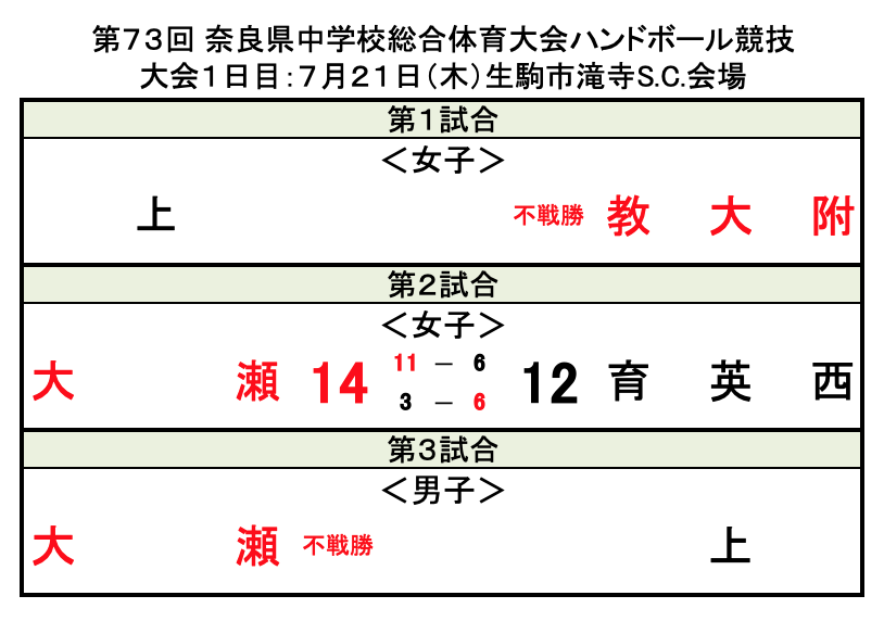 第73回 奈良県中学校総合体育大会ハンドボール競技 1日目結果