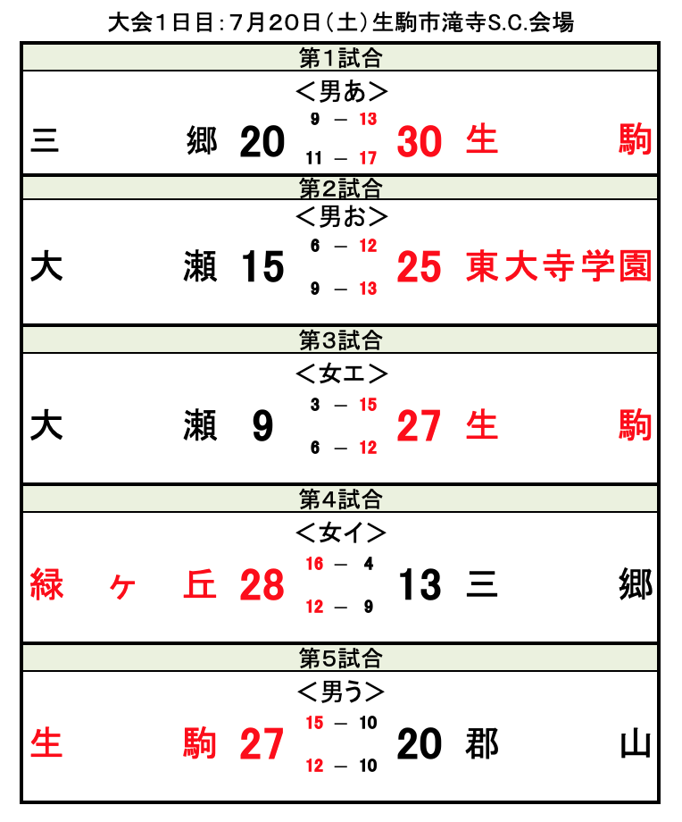 第75回 奈良県中学校総合体育大会ハンドボール競技1日目結果